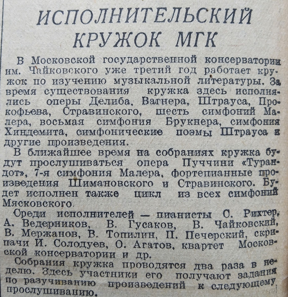 «Исполнительский кружок МГК». «Советское искусство», 13/10/40.