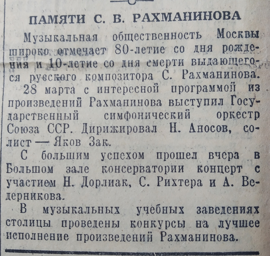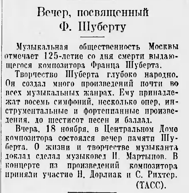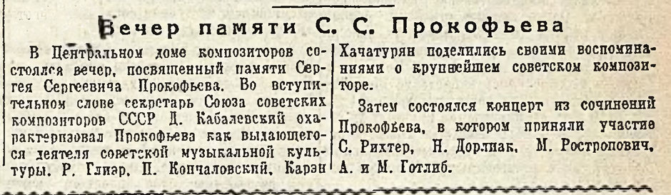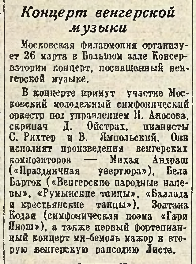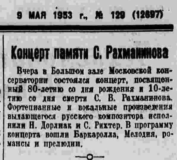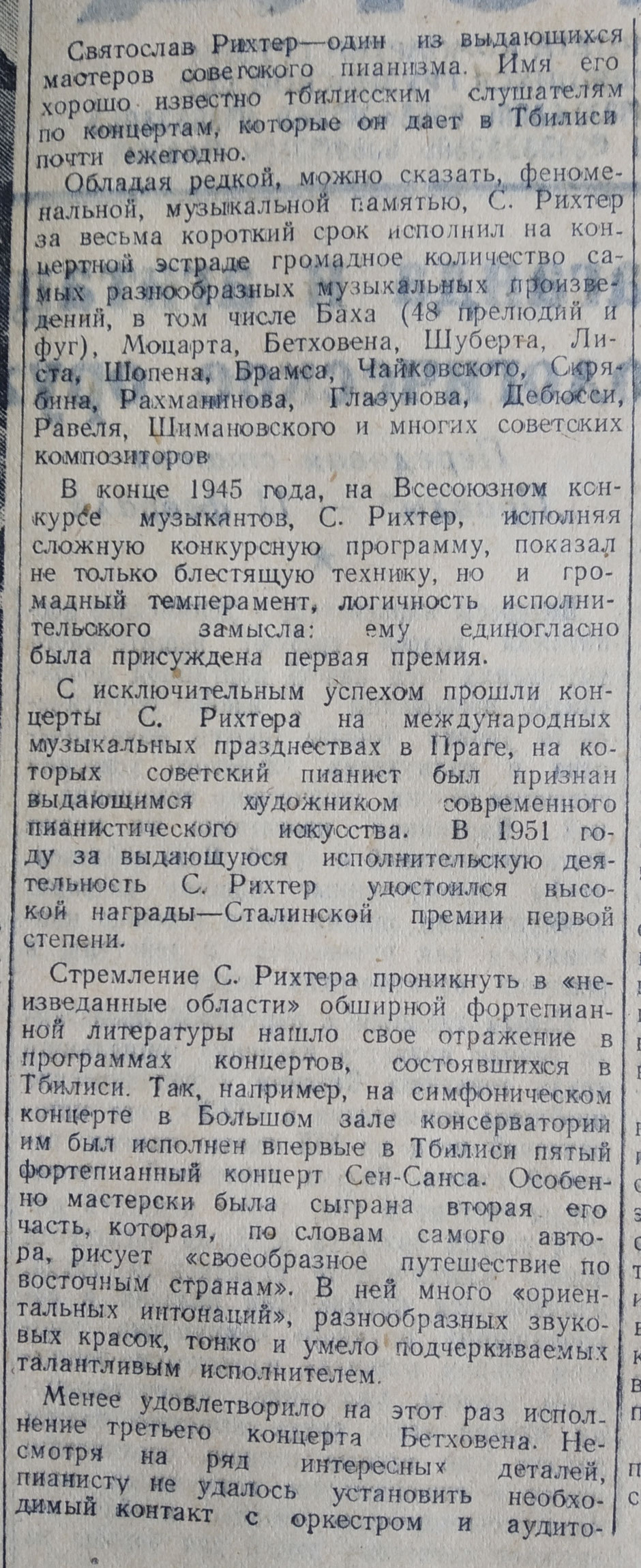 П.Печерский. «Концерты Н.Дорлиак и С.Рихтера». «Советская Латвия», 20/12/53.