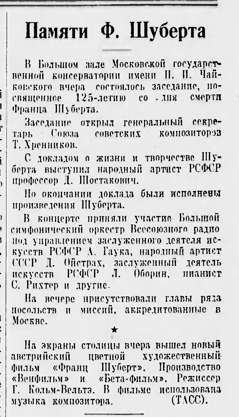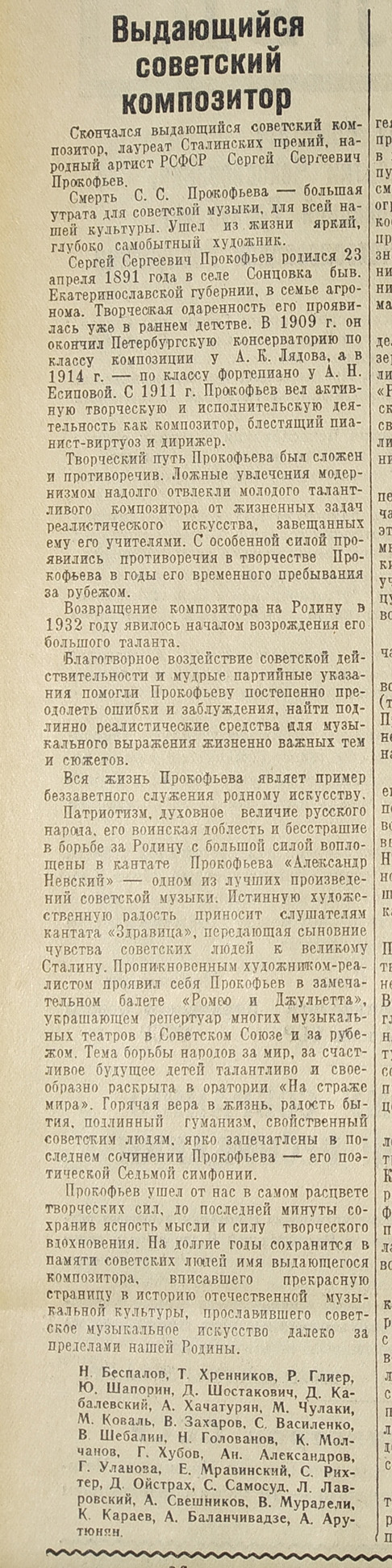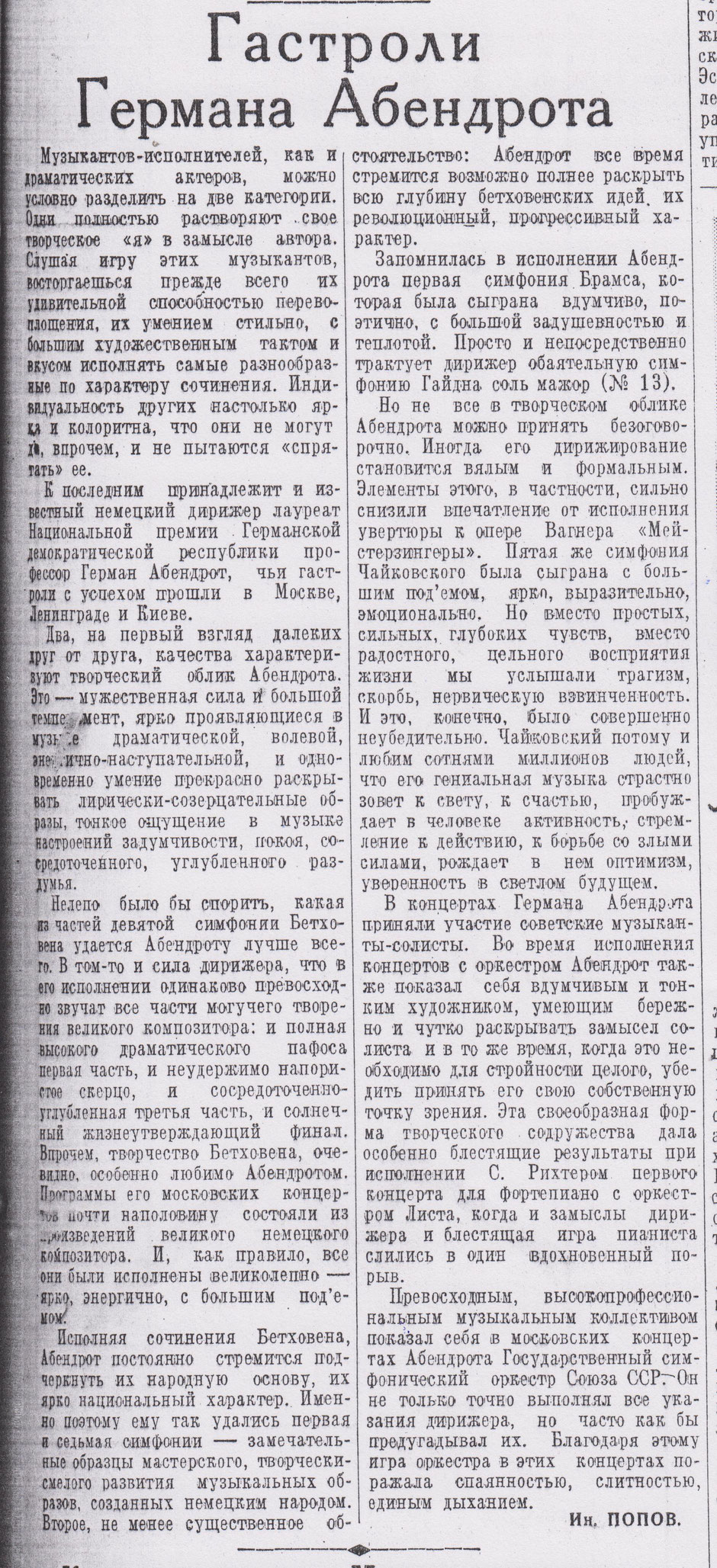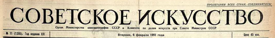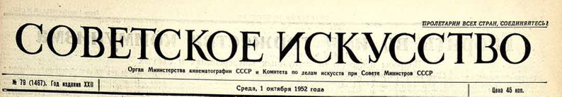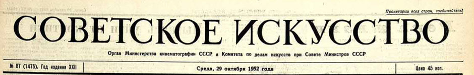 Ин.Попов. «Новое слово». Заметки о музыкальном строе фильма «Композитор Глинка». «Советское искусство», 1/10/1952.