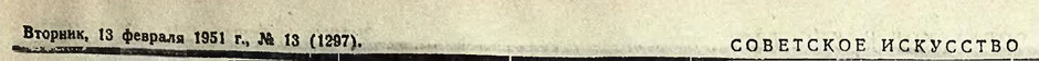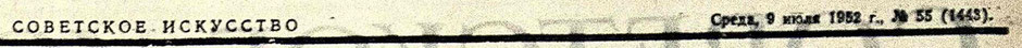 Н.Шехонина. «Советское искусство», 1952, 16 апреля.