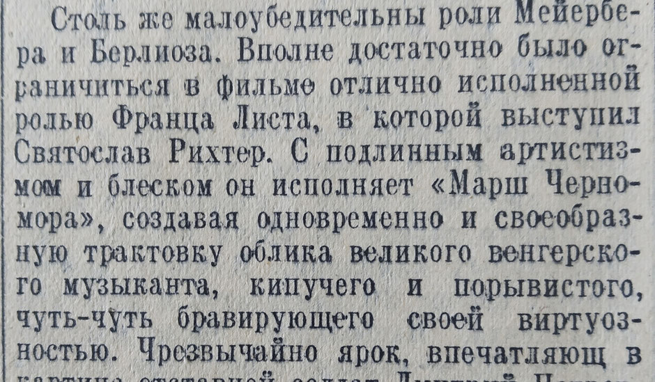 Музыкальная характеристика Франца Листа сделана С. Рихтером блестяще, но актерски она совершенно не удалась: Рихтер явно переигрывает.