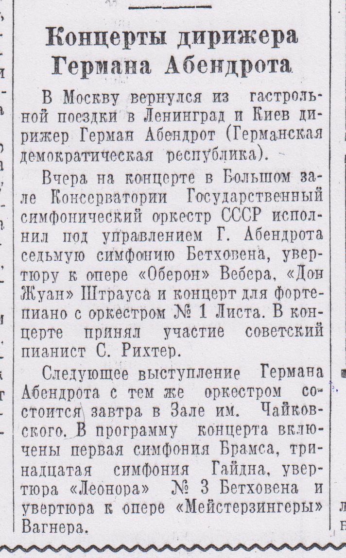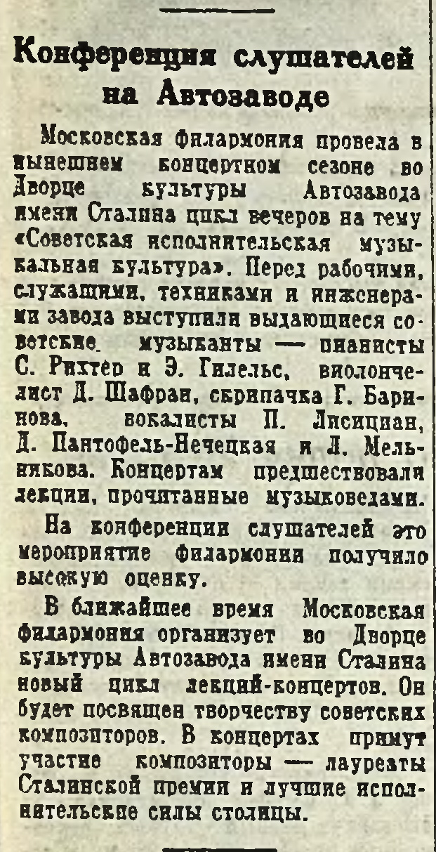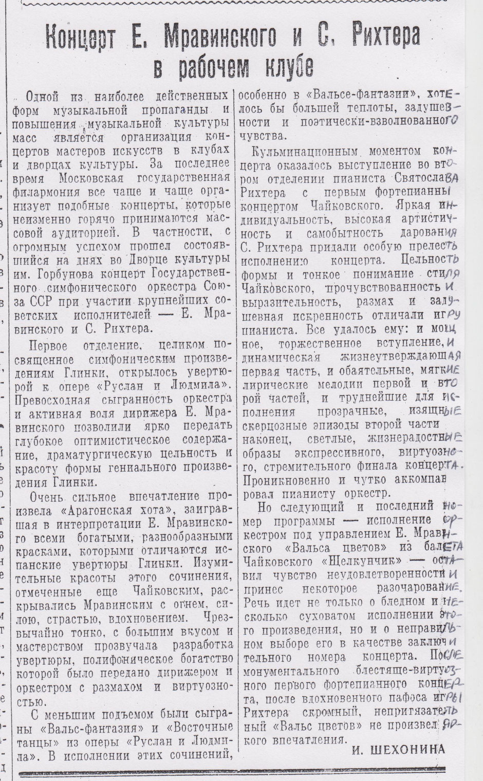 Концерт Е.Мравинского и С.Рихтера в рабочем клубе